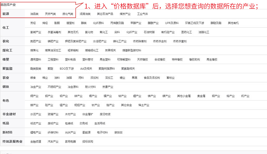 (1)进入“价格数据库”后,选择您想查询的数据所在的产业;