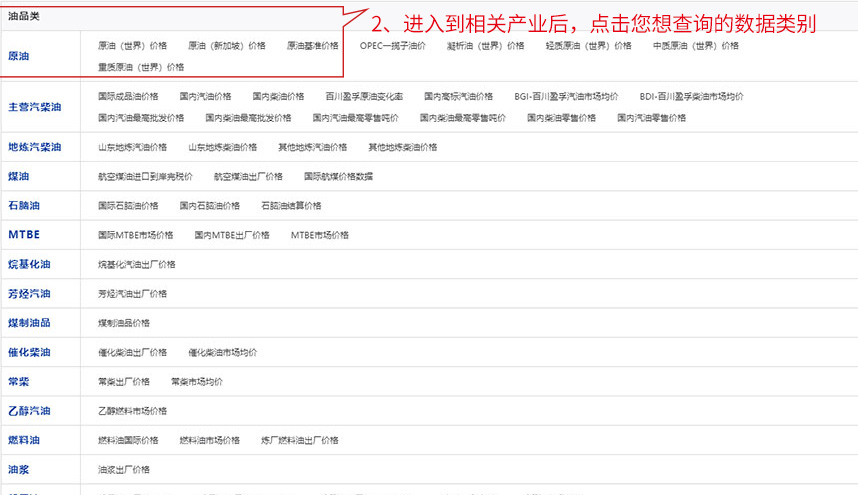 (2)进入到相关产业后,点击您想查询的数据类别。